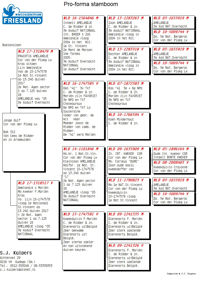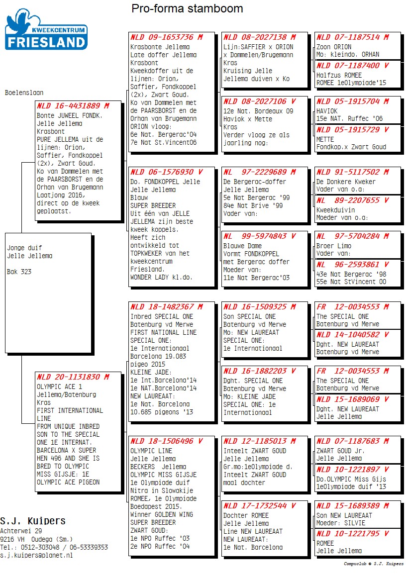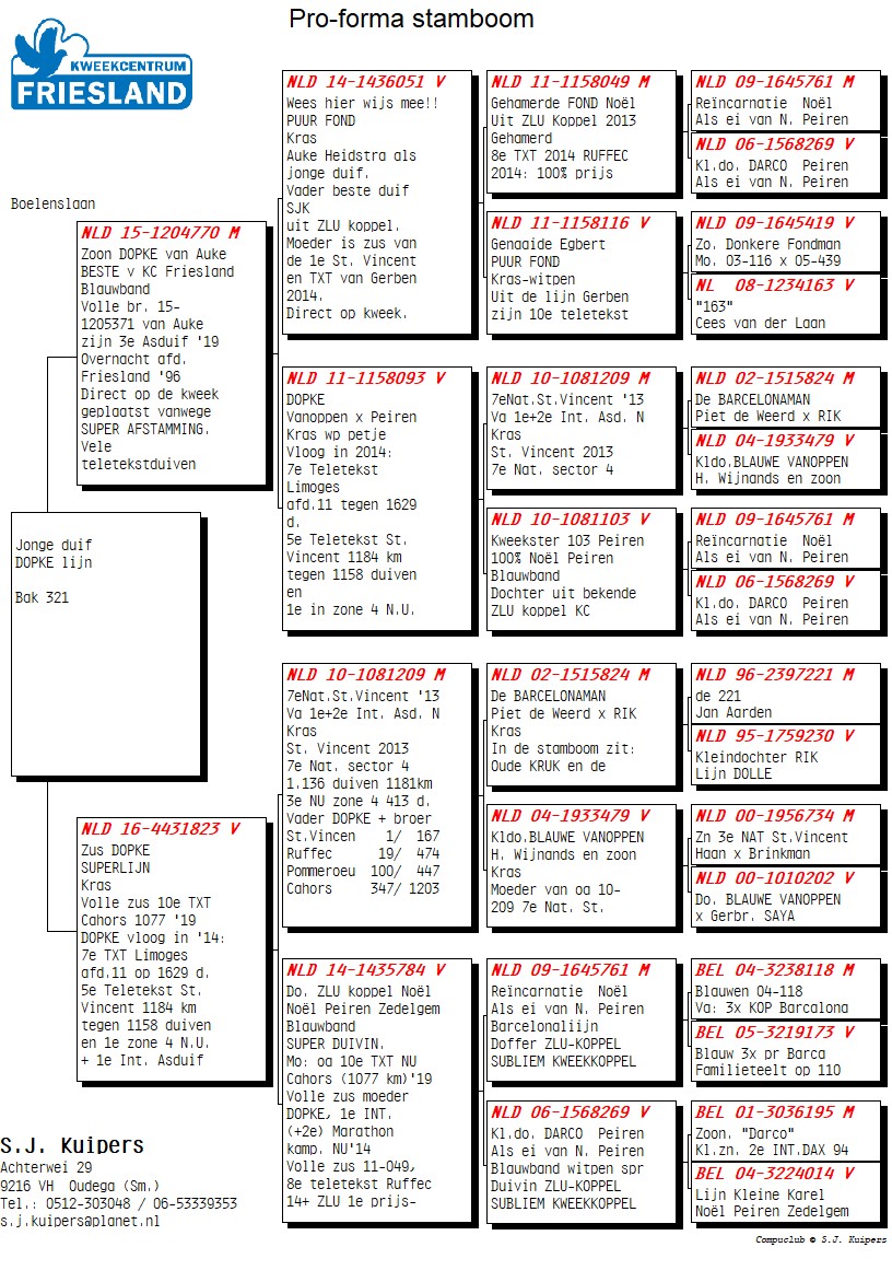 Vader uit lijn 2e Asduif DAX ZLU x Cor v.d. Ploeg lijnen x OLYMPIADE lijn comb. Verbeek