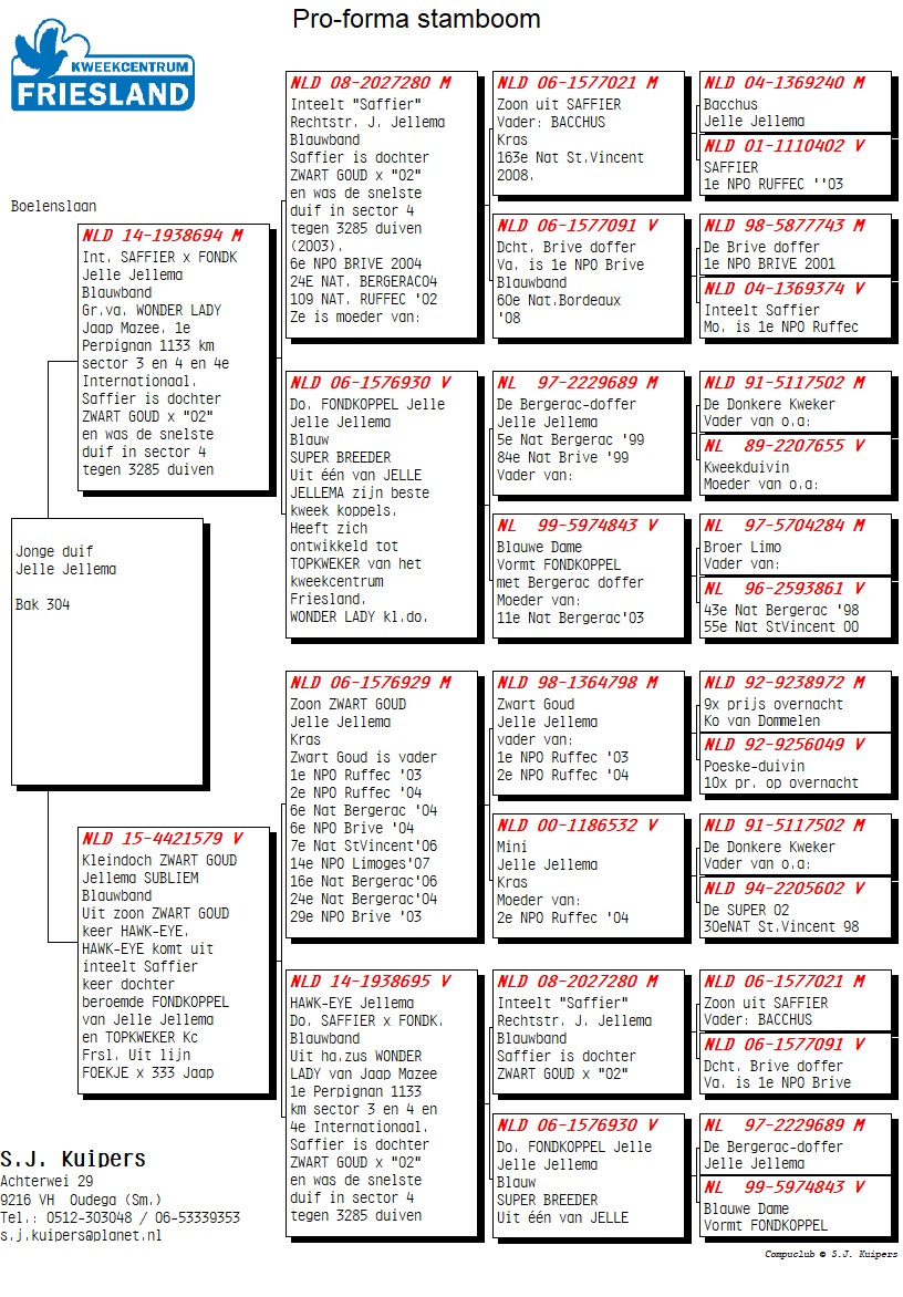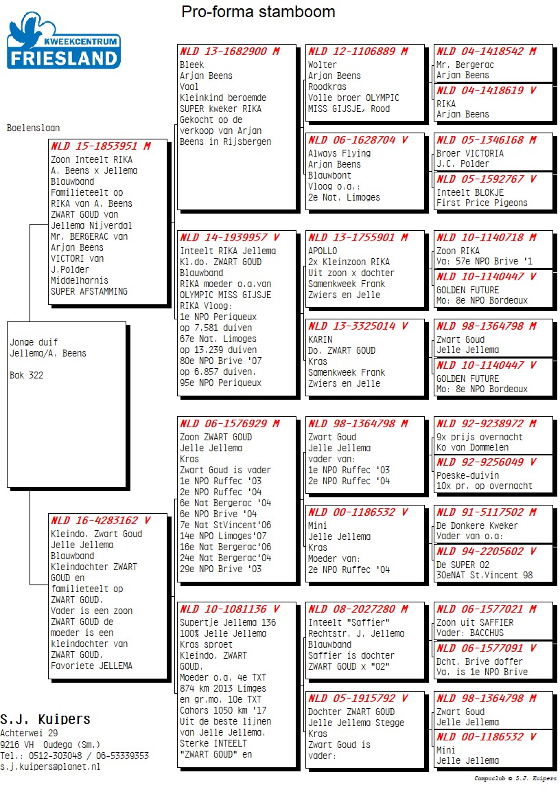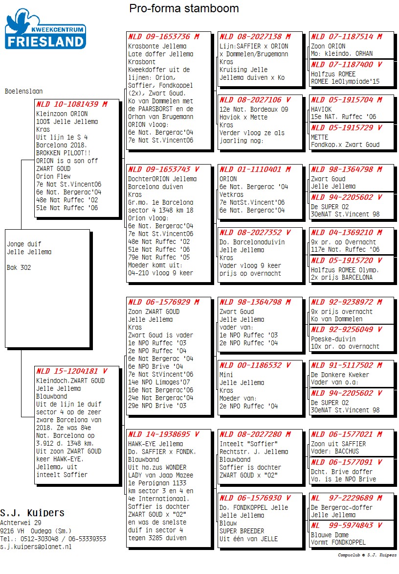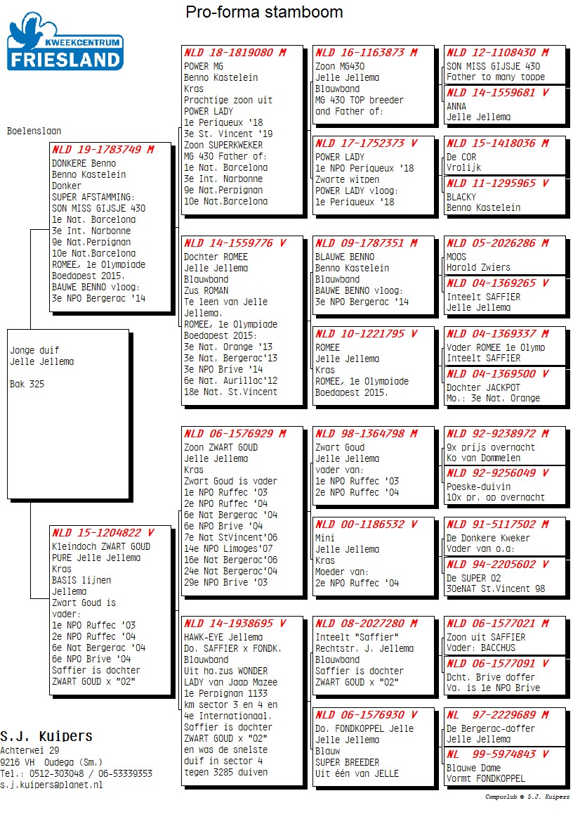 Vader uit lijn 2e Asduif DAX ZLU x Cor v.d. Ploeg lijnen x OLYMPIADE lijn comb. Verbeek