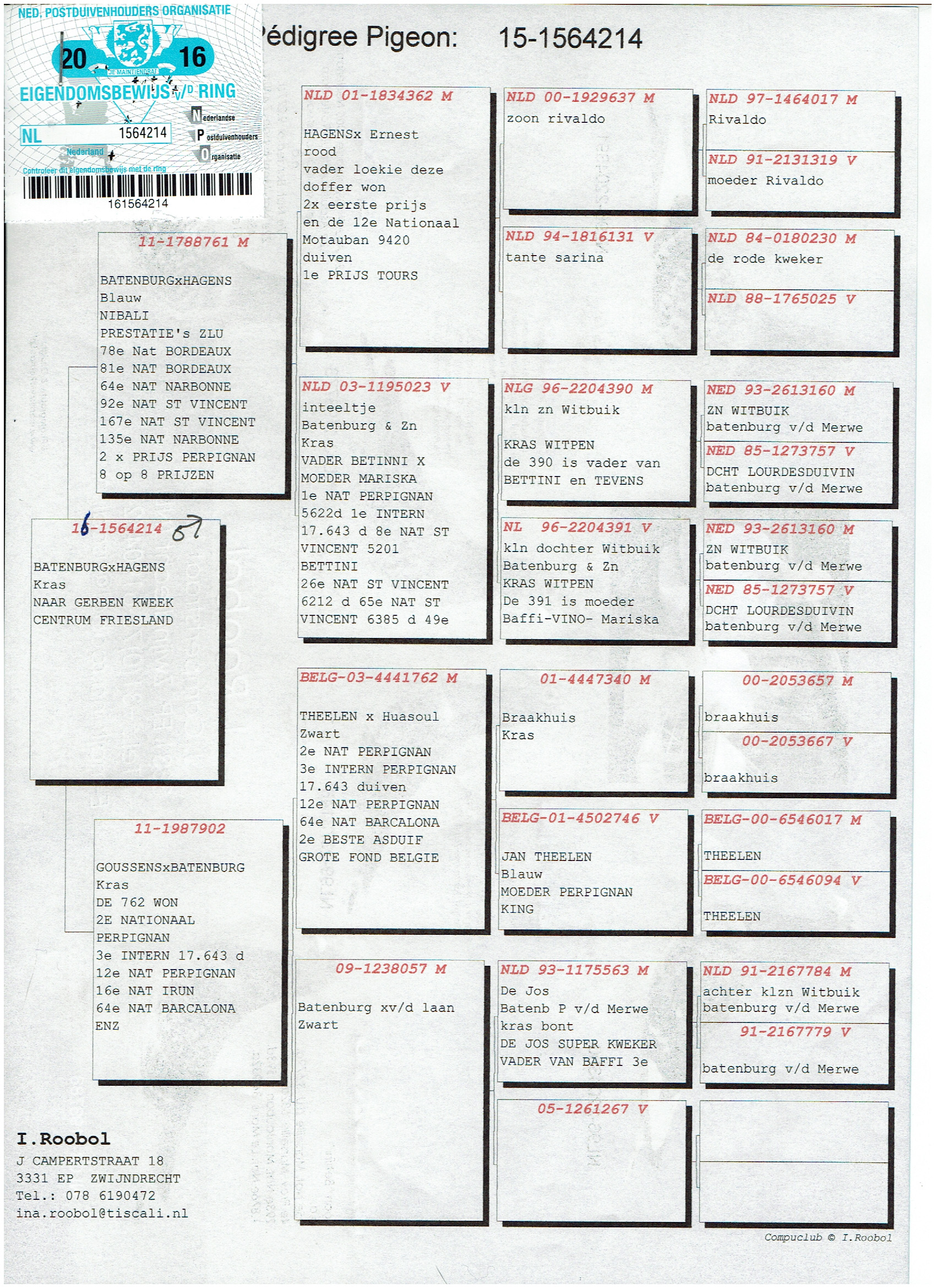 Het is een ruilduif uit de NIBALI van Jan en Ina Roobol. NIBALI was de