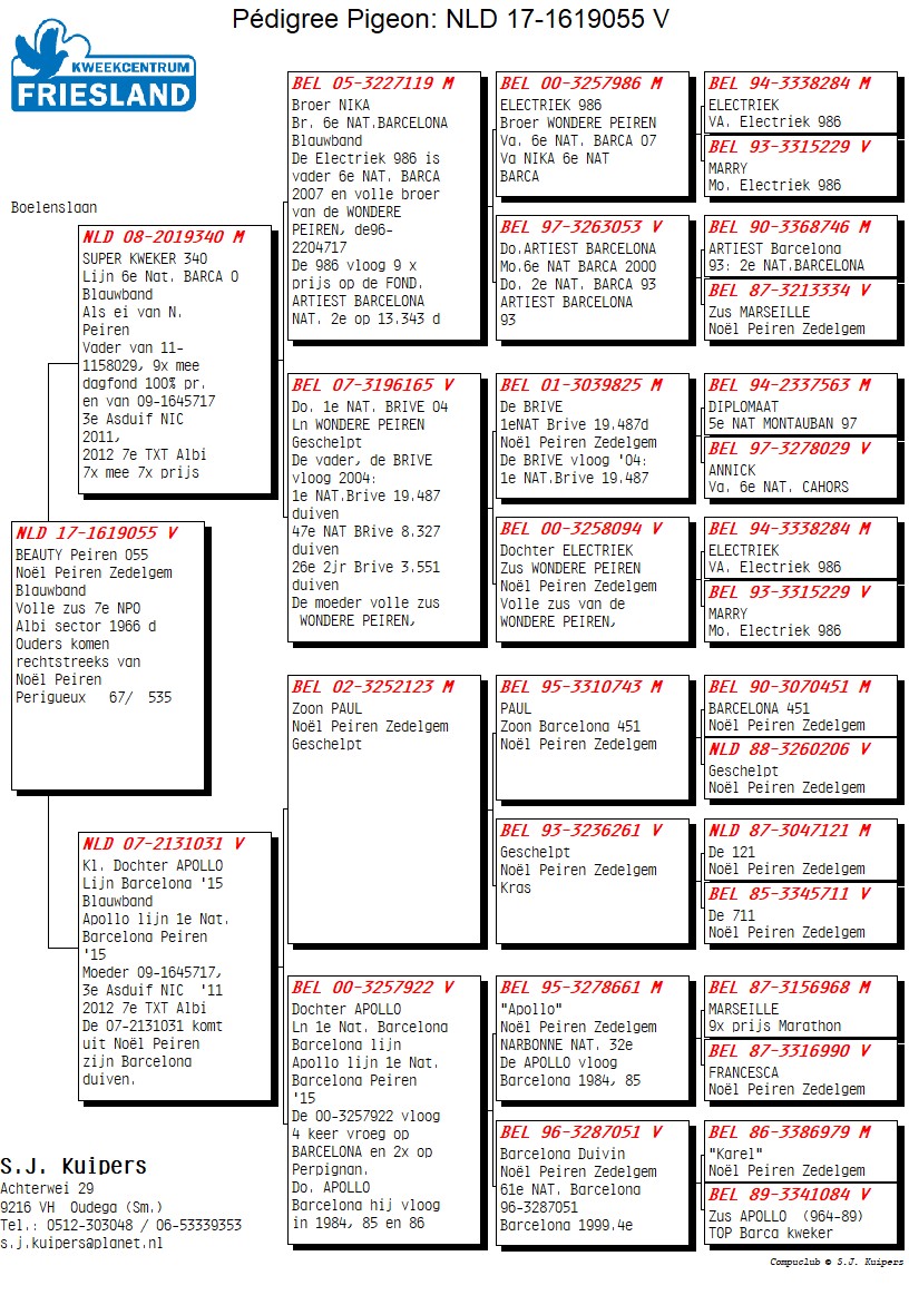 De 19-1219196 was 13e van het NIC en was 34e in zone 4 van de NU tegen 1365 duiven. Dit koppel hebben we bewust als familiekweek bij elkaar gezet. Dan is het mooi dat de eerste goede resultaten er nu zijn.
