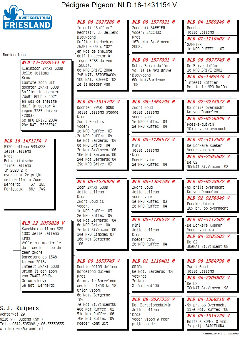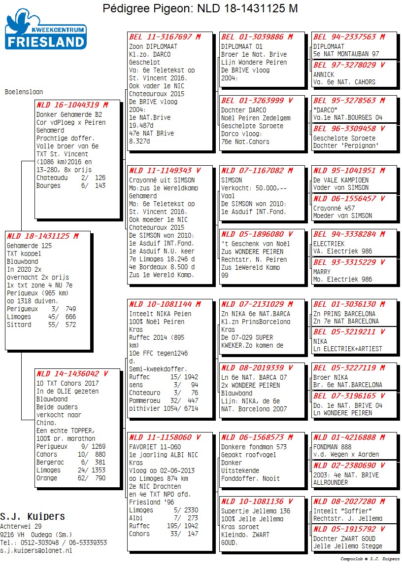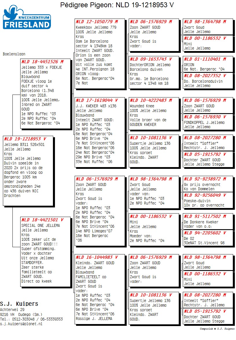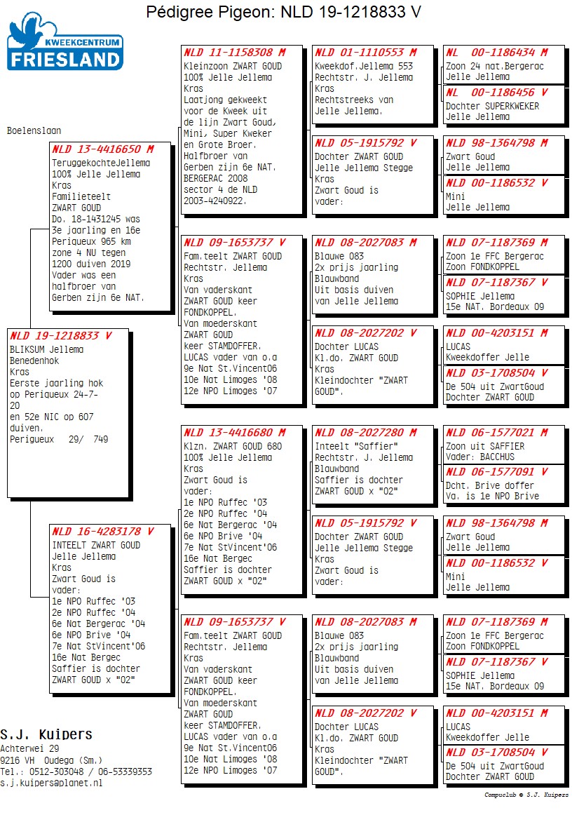 Hier de stamboom van Gerben zijn favoriete jaarling doffer: